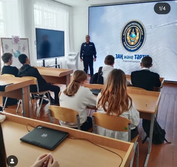 В школе в рамках ОПМ «Быт» прошло профилактическое мероприятие с участием участкового инспектора полиции, майора полиции Жилкибаева К.К. В ходе встречи были рассмотрены вопросы профилактики бытового насилия, разъяснено понятие сталкинга, его признаки и ответственность за противоправные действия. Особое внимание было уделено защите прав несовершеннолетних и личной безопасности подростков. Учащиеся получили важную правовую информацию и задали интересующие вопросы. Проведение подобных мероприятий способствует предупреждению правонарушений и формированию законопослушного поведения среди молодежи.