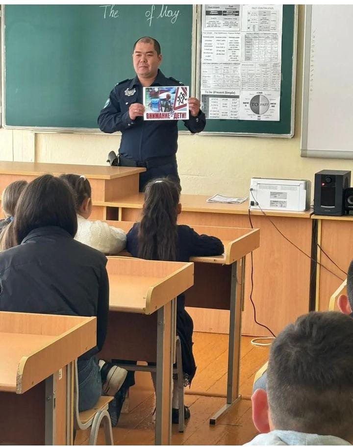 23 мамырда учаскелік инспектор полиция майоры К. К. Жылқыбаевпен "жазғы кезеңдегі мінез-құлық ережелері"профилактикалық әңгіме өткізілді